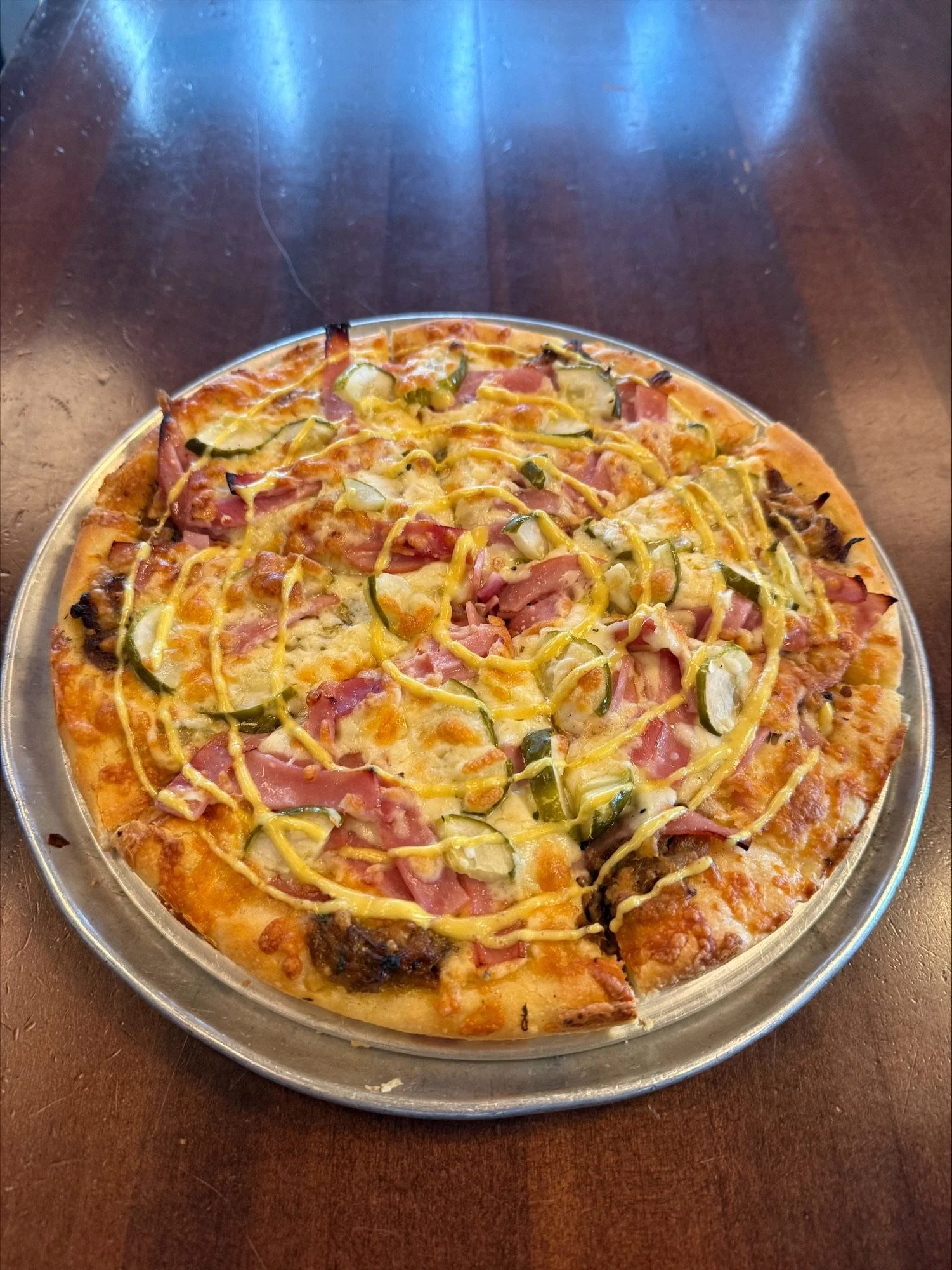 Garlic Butter Base Mojo marinated slow cooked pulled pork Ham Dill Pickle Slices Swiss & Mozzarella Cheese Mustard Aioli